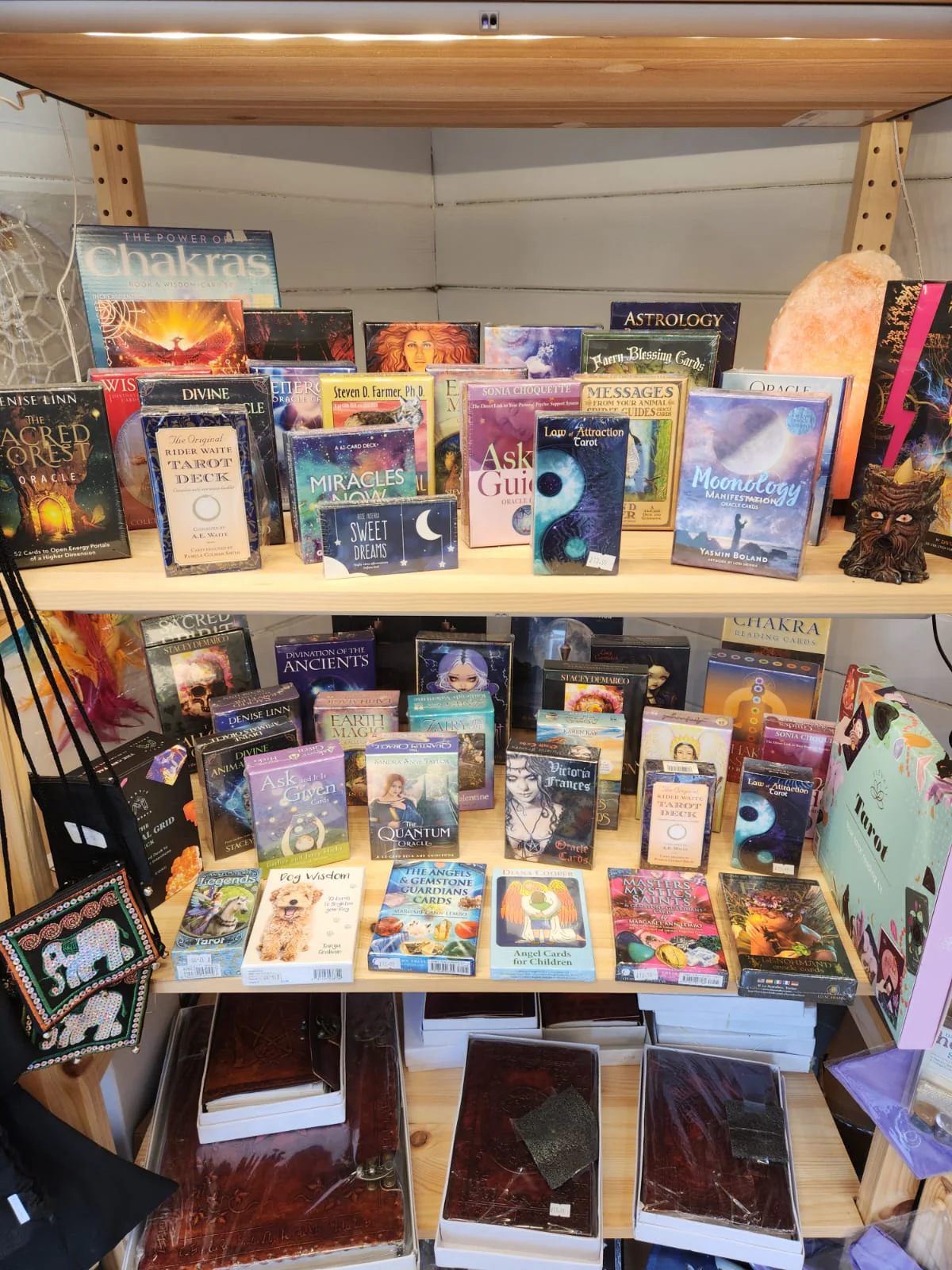 You’ll also find a beautiful range of tarot and oracle cards, including themed decks such as Chinese-inspired tarot cards, along with books on nearly every new age subject imaginable. And if there’s something specific you’re looking for that’s not in our collection, just let us know — we’ll be happy to help you find it.
