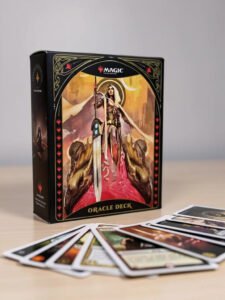 Accompanied by a guidebook, this oracle deck introduces readers to the practice of oracle card reading, offering guidance on how to use and interpret the cards along with descriptions of each image. Perfect for fans of Magic: The Gathering as well as oracle readers and collectors, this deck invites you to explore new realms of meaning, intuition, and inspiration through the rich lore of Theros.
